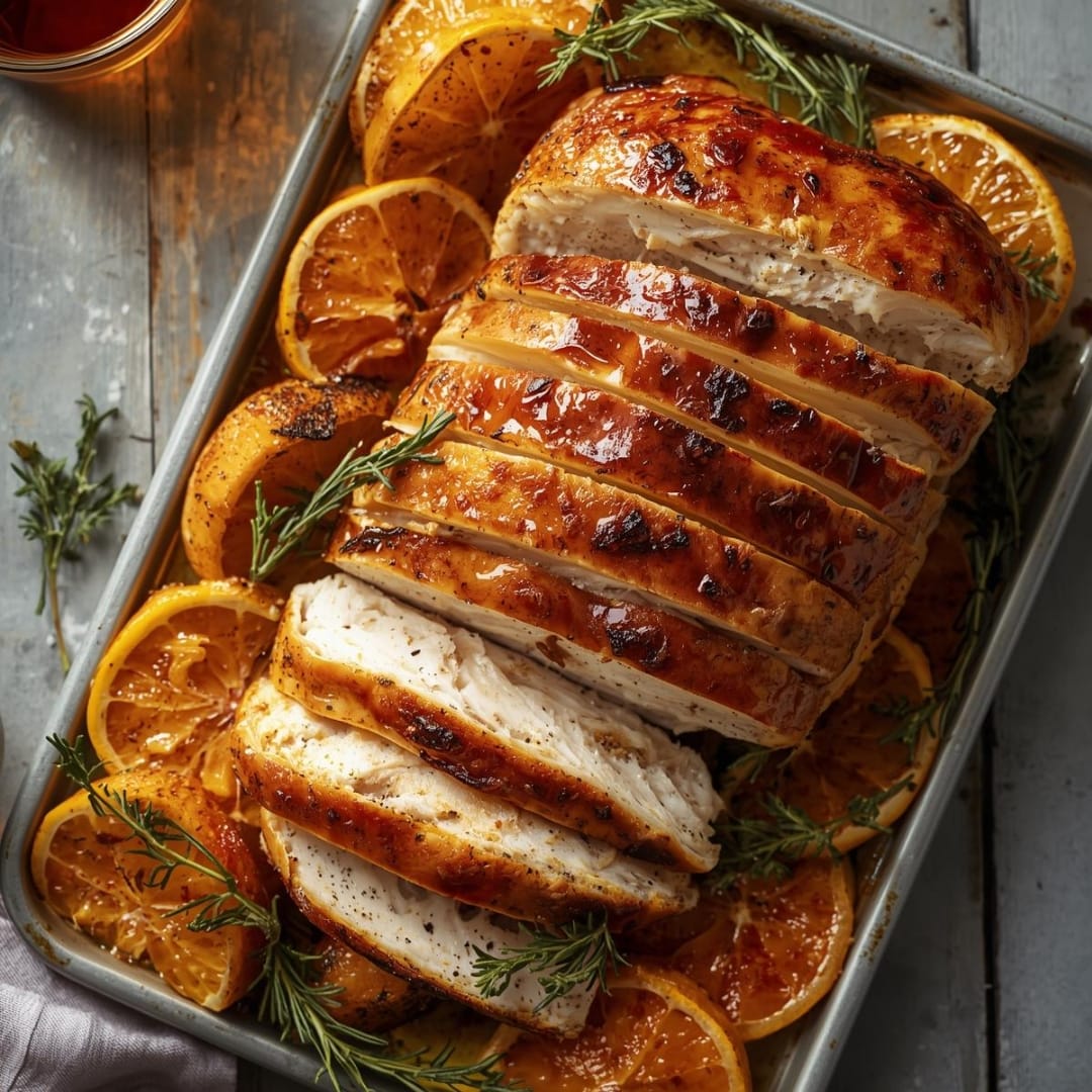 Peru assado com citrinos, leve, aromático e saboroso acompanhado com arroz branco